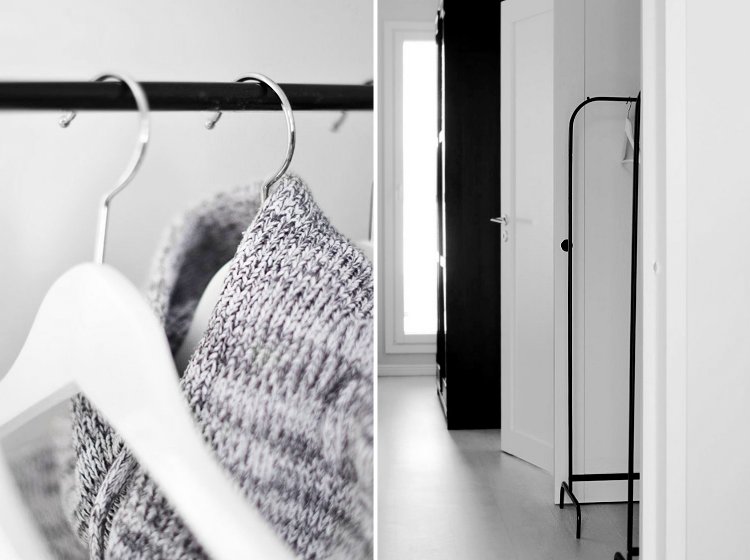 Tarkoitus oli tehdä pääty samalla idealla kuin aikaisemmin Iisalmessakin: seinään maalaamalla ja kehykset listoittamalla. Tällä kertaa musta väri tuntui liian voimakkaalta, sillä makuuhuoneessa on jo musta lipasto ja kaappi. Toisaalta musta ei olisi ollut harmoninen valinta siitäkään syystä, että makkari sijaitsee (vaalean) keittiön vieressä ja kontrasti olisi muodostunut huonenäkymien välillä turhan kovaksi. Päädyin harmaaseen, jota löytyi valmiina jämämaalipurkeista.